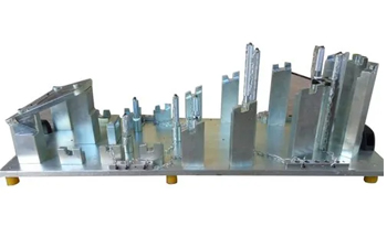 Bending is a manufacturing process that produces a V-shape, U-shape, or channel shape along a straight axis in ductile materials, most commonly sheet metal. Commonly used equipment include box and pan brakes, brake presses, and other specialized machine presses. Bending is a specific stamping process where the sheet metal parts are deformed to create a V or U shape or add channels into the part. Since metal parts will spring back in response to force, bending tools are precision made to over-bend parts, so they spring back to the desired shape.