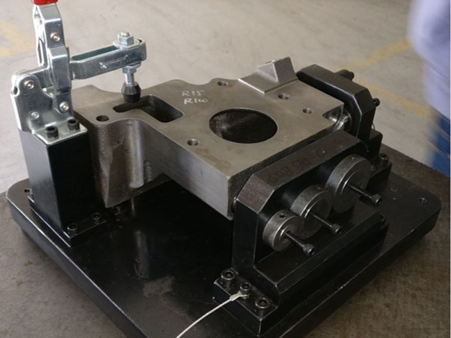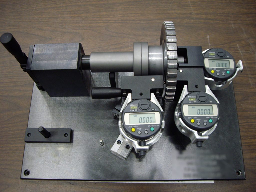 A ring gauge is made from the box end of an authenticated precision threaded member and a plug gauge is made from the pin end thereof. The pin end is machined laterally and radially at its nose to ensure complete engagement of the threads. This piece of copper will become a Bourdon tube, the heart of the gauge. As pressure rises inside the tube, it flexes. This is what will make the indicator needle move when the whole mechanism is assembled. Next comes a brass connector to link the Bourdon tube to an inlet pipe.